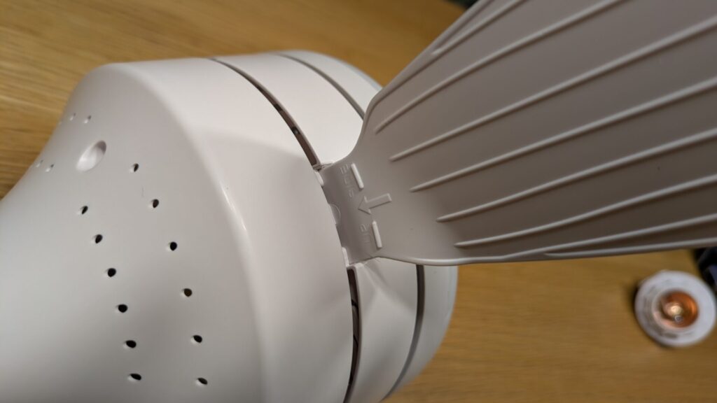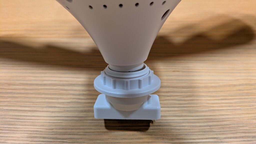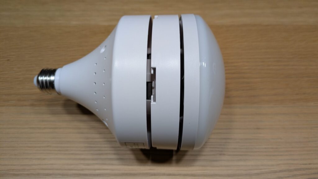 でかいE26口金の電球のようなフォルムです。羽を差し込む穴があります。