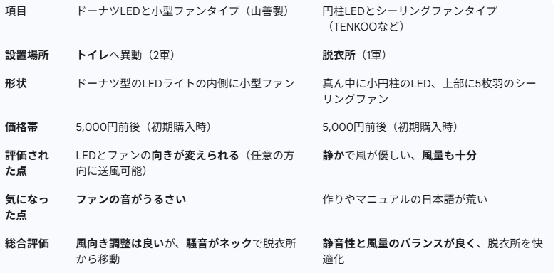 二軍:ドーナツLEDと小型ファンタイプ(山善製)