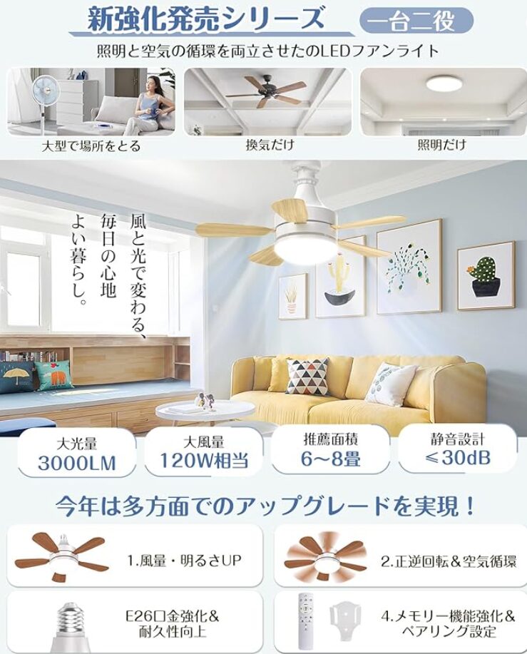 今回は灼熱の夏に我が家で大活躍した「ファン(扇風機)付LED照明」を紹介します。