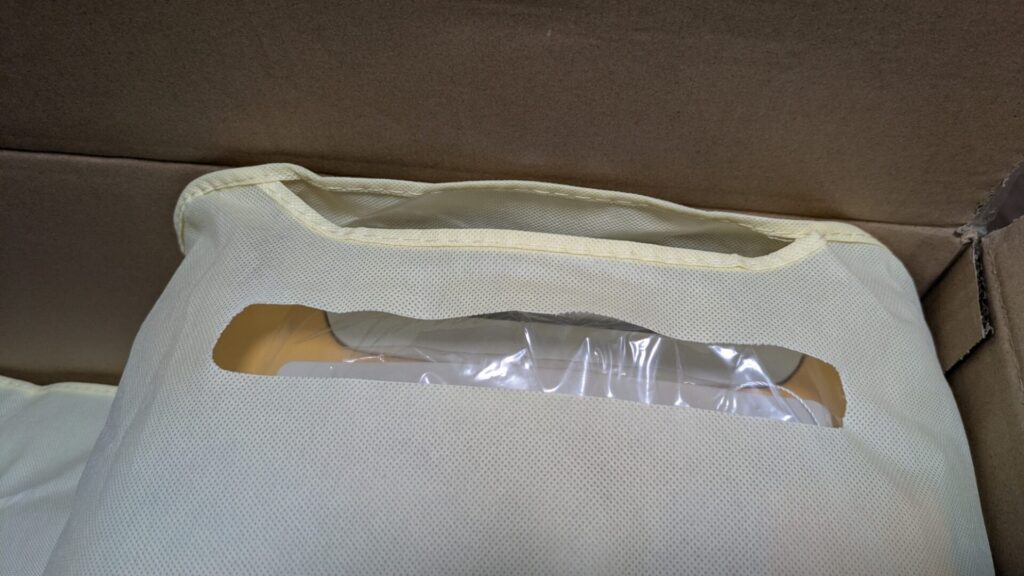 かわいいロゴがプリントされた大きな段ボールで到着。不織布のカバーで丁寧に梱包されています。箱に印字されたコメントが、旅行への楽しみを掻き立ててくれます。