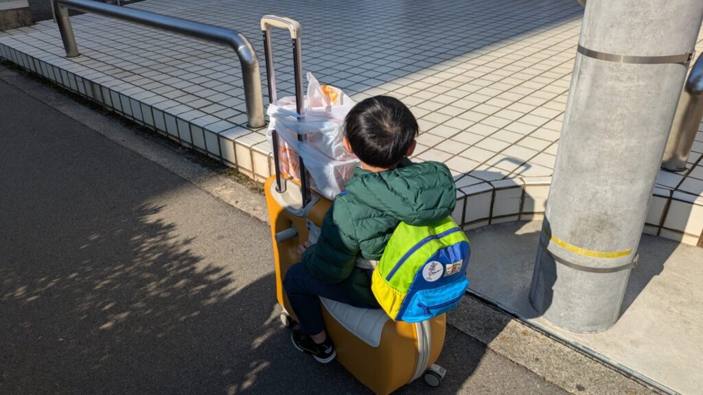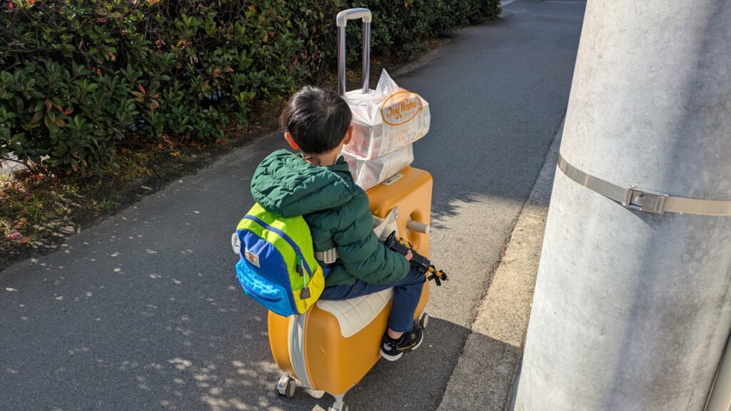**「15kgと12kgをそれぞれ抱っこしながら、この荷物を引いて駅まで10分歩く」**という、一瞬で無理ゲーとわかる状況でしたが、ここでノリッコ様が大活躍。
