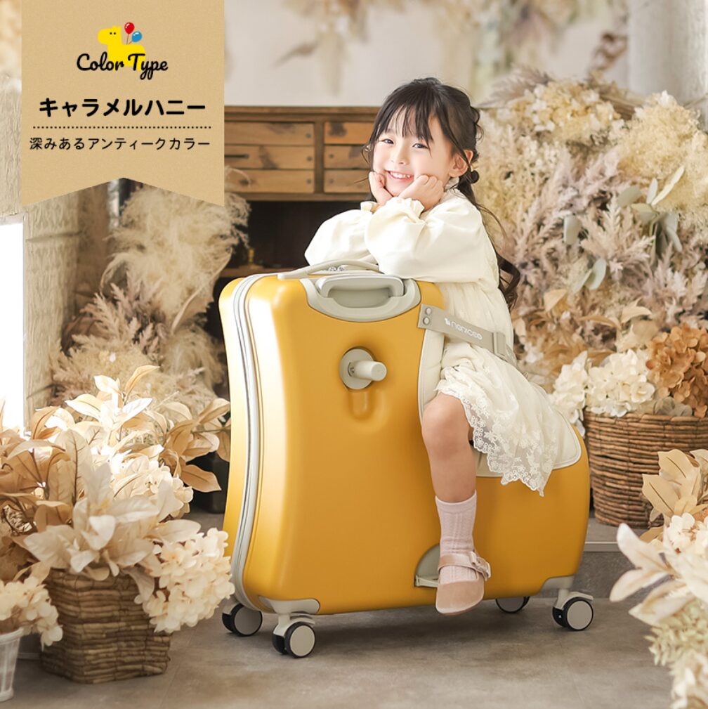 我が家の相棒には、息子チョイスで**「キャラメルハニー」**をセレクト。 空港の荷物返却コンベアでも一目で自分のものだとわかる、鮮やかでポップなカラーです。